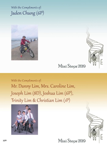 With the Compliments of: Jaden Chung (6P) With the Compliments of: Mr. Danny Lim, Mrs. Caroline Lim, Joseph Lim (8D), Joshua Lim (6P), Trinity Lim & Christian Lim (1P) 356