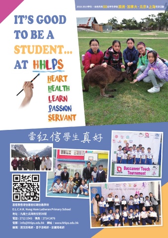 2018-2019學年,本校共有80 位學生參加澳洲 、加拿大 、北京 及上海 交流活動 IT’S GOOD TO BE A STUDENT… AT 當 紅信 學生 真好 基督教香港信義會紅磡信義學校 E.L.C.H.K. Hung Hom Lutheran Primary School 地址:九龍土瓜灣炮仗街39號 電話 : 2712 1543 傳真:2714 2476 電郵:info@hhlps.edu.hk 網址:www.hhlps.edu.hk 編輯:蕭文欣老師、曾子津老師、彭麗瑤老師