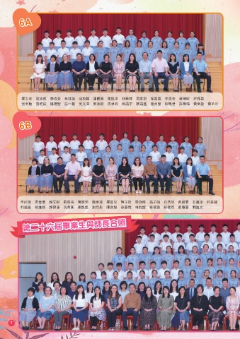6A 羅世安 范迪朗 陳成晉 林鈺城 成柏賢 潘朗翹 陳逸洋 林曉婷 周家齊 韋嘉霖 李洛言 黃皓欣 許佩嘉 何卓勳 游皓鈜 楊德聖 莊一羲 何文澤 鄧泳桐 周卓筠 高靖宇 蔡靖遙 潘貞瑩 柳佩君 許曉晴 黃樂盈 黃芊沂 6B 李尚俊 梁晉僑 賴立相 劉易宗 陳家榮 魏東源 羅善兒 陳芷妍 梁詠稀 翁子茵 石浩欣 黃穎思 石鑫泳 何采蘊 利迪志 楊進皓 許錦濠 冼韋衡 趙凱悠 謝欣彤 陳樂殷 孫慧悅 林鈞誼 林德源 蘇敬然 黃聰慧 利迪文 第二十六屆畢業生與師長合照 7
