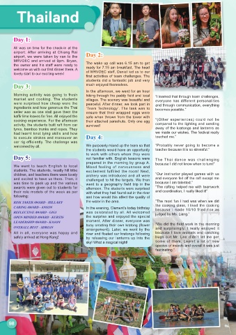 Day 5: not familiar with. English lessons were The Thai dance was challenging