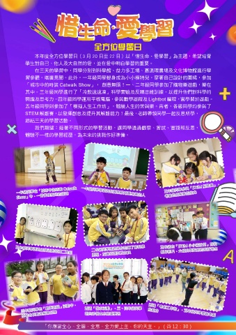 本年度全方位學習日(3 月 20 日至 22 日)以「惜生命•愛學習」為主題,希望培育