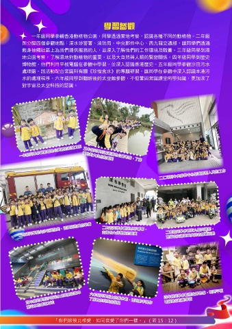 五年級同學到沙田污水處理廠認識本 了解太空科技的發展 四年級同學參觀歷史博物館,利用平板