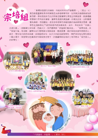 天使計劃」,鼓勵學生多祈禱,信靠天父。我們還舉辦「將臨期行動承諾」、「無零食週」及