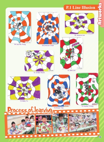 Artworks P.1 Line Illusion 1B Jessica Lau 1A Lap Kiu Fung 1B Deacon Chan 1C Zita Lee 1C Gillian Kwok 1D Abby Yu 1E Kayley Cheng Process of learning 1D Anson Yau 16