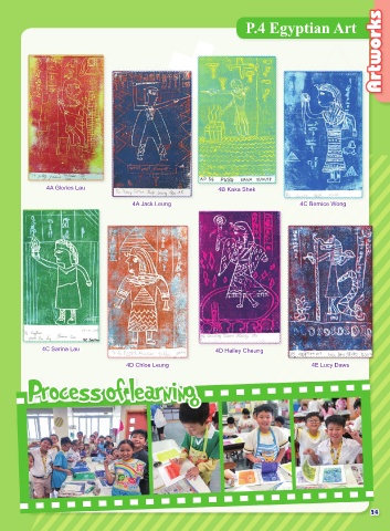 Artworks P.4 Egyptian Art 4A Glories Lau 4B Kaka Shek 4A Jack Leung 4C Bernice Wong 4C Sarina Lau 4D Hailey Cheung 4D Chloe Leung 4E Lucy Daws Process of learning 24