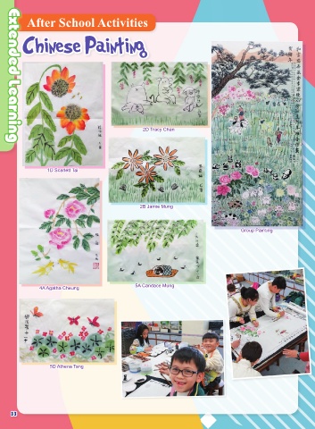 After School Activities Chinese Painting 2D Tracy Chan Extended Learning 1D Scarlett Tai 2B Jamie Mung Group Painting 4A Agatha Cheung 5A Candace Mung 5D Athena Tang 33