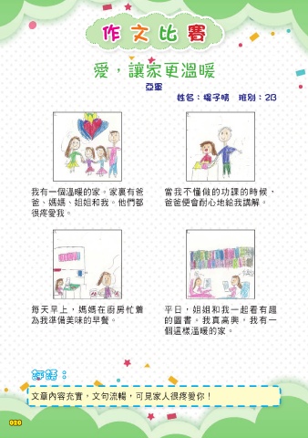 作 文 比 賽 愛,讓家更溫暖 亞軍 姓名:楊子晴 班別:2B ҢϞɓࡈาٙf㛪Ϟه ҢʔᏑਂٙ̌ሙٙࣛࡉd هee֎֎ձҢf˼ࡁே ههکึߗːήഗҢᑺ༆f ܘ़ฌҢf ӊ˂Ϙɪdίᄼגώ䋠 ̻˚d֎֎ձҢɓৎϞሳ މҢ௪ߕբٙϘf ٙྡࣣfҢॆ৷ጳdҢϞɓ ࡈவᅵาٙf 評語: ˖ʫ࢙̂ྼd˖̩ݴd̙Ԉɛܘ़ฌЫl 020