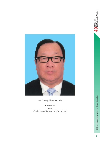 YEARS OF EXCELLENCE 40 Mr. Chang Albert Ho Yin Chairman and Chairman of Education Committee School Development over Four Decades 4