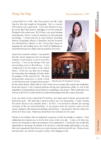 I joined KCCS in 1990. My Class-teacher was Ms. Chan EXCELLENCE