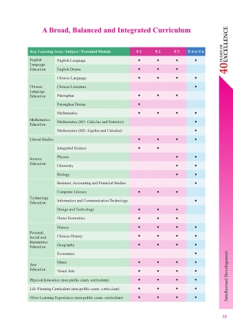 Key Learning Area / Subject / Extended Module F.1 F.2 F.3 F.4 to F.6 YEARS OF EXCELLENCE