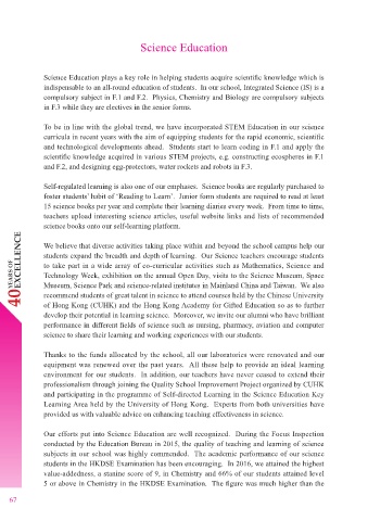 conducted by the Education Bureau in 2015, the quality of teaching and learning of science
