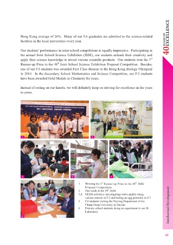 Hong Kong average of 26%. Many of our F.6 graduates are admitted to the science-related EXCELLENCE