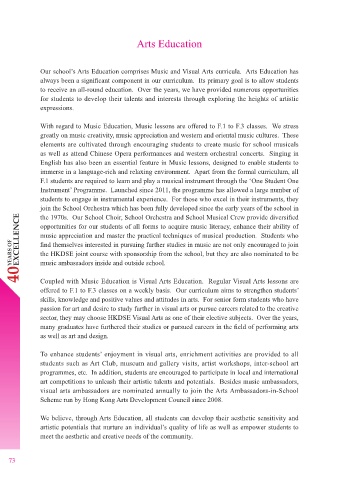 40 Coupled with Music Education is Visual Arts Education. Regular Visual Arts lessons are
