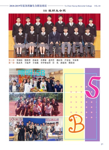 2018-2019ϋܓफࢪ͛Υʿਖ਼ࠫ Yu Chun Keung Memorial College VOL.44 5B 班師生合照 第二排:ੵംೱ ᄎ啓ᥳ ശڲ ҽࣈྐྵ ጅӒԊ ᒤ݁ሊ ཱྀࣜ О௫ 第一排:ँ৷ܠ ˮݵ ˮወళ ҽ˰௫ϼࢪ ుcཡ ᘽܔ ಌࣦ 5 B 21