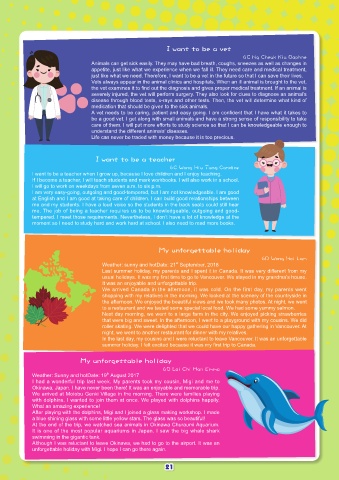 just like what we need. Therefore, I want to be a vet in the future so that I can save their lives.