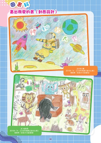圖書 科 畫出我愛的書(封面設計) 2B 黎汶慧 2019年「4.23 世界閱讀日創作比賽」 優勝獎(香港中央圖書館) 2C 麥凱喬 2019年「4.23 世界閱讀日創作比賽」 優勝獎(香港中央圖書館) 32