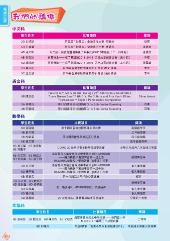 學生姓名 比賽項目 獎項