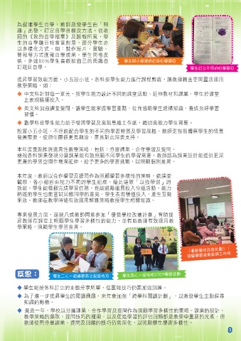 提昇學習效能方面,小五設小班,各科按學生能力進行課程剪裁,讓教師騰出空間靈活運用