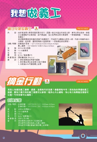 日期/時間: 訓練/製作皮革:19/7-23/8/2019(五)2:00pm-4:30pm