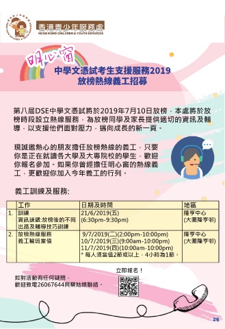 2. 放榜熱線服務 9/7/2019(二)(2:00pm-10:00pm) 隆亨中心 隆亨中心 9/7/2019(二)(2:00pm-10:00pm) 2. 放榜熱線服務
