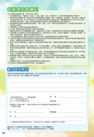 為提供安全舒適的環境與及優質的服務,本中心歡迎您將意見填寫於下表,並交回中心跟進。所有意見盡皆保密,並會