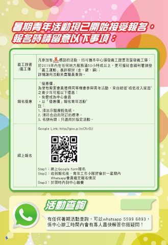 有任何暑期活動查詢,可以whatsapp 5599 6893,