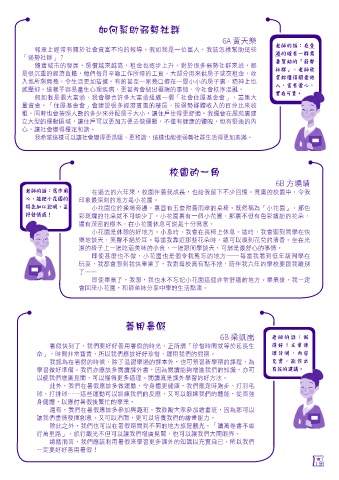 老師的話:寫作用 在過去的六年來,校園伴着我成長,也給我留下不少回憶。寬廣的校園中,令我