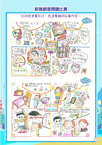 新雅創意閱讀比賽 以四格漫畫形式,表達書籍的故事內容。 2C 陳雄一 4E 陳嵐一 65