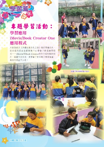 學習篇 專題學習活動: 學習應用 iMovie/Book Creator One 應用程式 ɽމவϣәᖬ͛࿒˖ʷʘࣚਂλཫ௪̌˃d ߒ̬ࡈ˜ۃ͟ϼࢪኬɨʊኪึəՇࡈᏐ͜ ό{iMovieձBook Creator͜ЪʧୗձႡЪ ˪dᔟഹʦϣʹݴdһኪึəһεཥɿኪ୦ٝᗆd ॆٙ˿ूʔˇճl 拍攝不同的情景製作影片 學習如何使用Book Creator 6 әᖬ͛࿒˖ʷʘࣚ