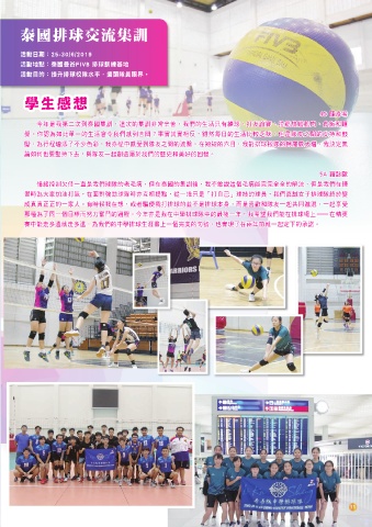 勵,為行程增添了不少色彩,我亦從中感受到隊友之間的連繫。在短短的六日,我對排球校隊的歸屬感大增,我決定無