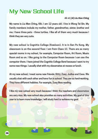 My name is Liu Man Ching, Kiki. I am 12 years old. I live in Wong Tai Sin. My