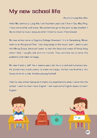 Hello! My name is Li Lung Wai. I am fourteen years old. I live in Sau Mau Ping.