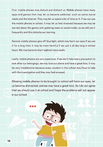 Second, mobile phones give off blue light, which may harm our eyes if we use