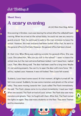 felt more scared. Suddenly, he saw some monsters and ghosts at the school