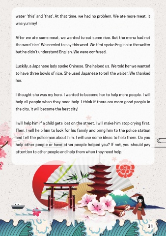 the word ‘rice’. We needed to say this word. We first spoke English to the waiter
