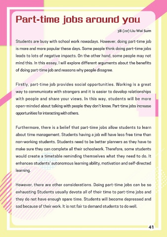 Furthermore, there is a belief that part-time jobs allow students to learn