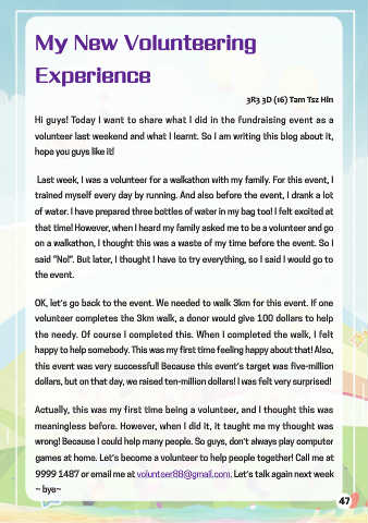 9999 1487 or email me at volunteer88@gmail.com. Let’s talk again next week