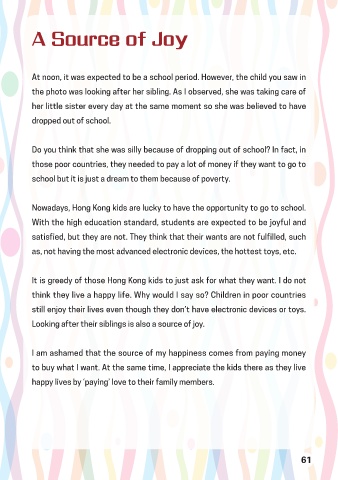 Nowadays, Hong Kong kids are lucky to have the opportunity to go to school.