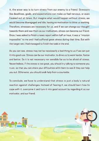 it, the wiser way is to turn stress from our enemy to a friend. Stressors