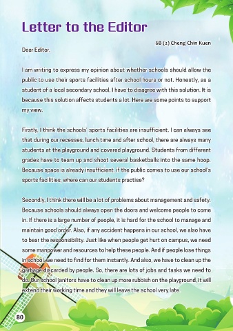 Firstly, I think the schools’ sports facilities are insufficient. I can always see