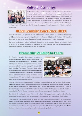 Promoting Reading to Learn To widen the study pathway for our students after graduation, we have been putting continuous effort in searching