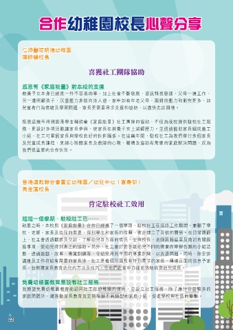 及兒童成長課程,更細心聆聽家長及教師的心聲,輔導及協助有需要的家庭解決問題,成為