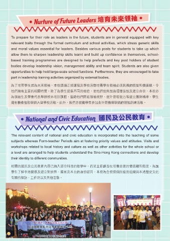 為了培育學生成為未來領袖,本校透過正規課程及學校活動培養學生領袖必須具備的技能和價值觀,令