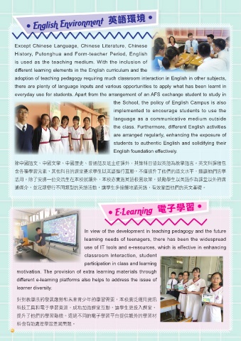 通媒介,並定期舉行不同類型的英語活動,讓學生多接觸地道英語,有效鞏固他們的英文基礎。