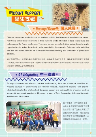上的困難及為未來的挑戰作好準備。各種活動提供大量機會讓學生磨練他們成長必備的基本技能,而課