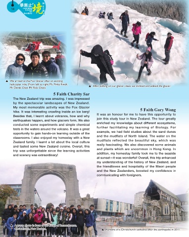 helicopter ride. (From left to right: Ms. Pinky Kwok, After putting on our glacier claws, we climbed and walked the glacier.