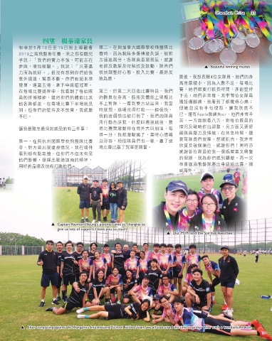 第一,在與杭州國際學校飛盤隊比賽 以形容,相信隊員們也一樣,贏了這 要幫隊員們按摩,舒緩肌肉,我非常