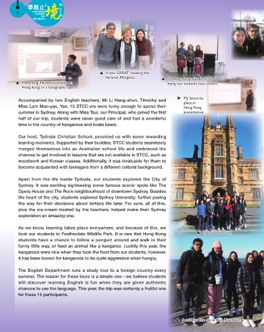 summer in Sydney. Along with Miss Tsui, our Principal, who joined the first presentation.