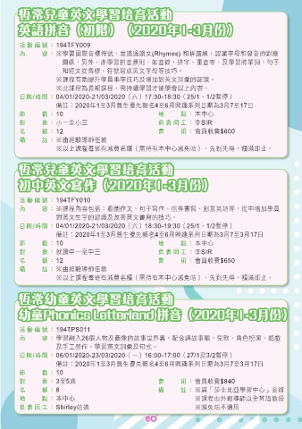 備註︰2020年1至3月舊生優先報名4至6月興趣系列日期為3月7至17日