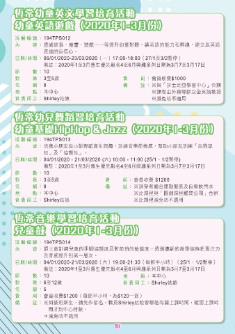 備註︰2020年1至3月舊生優先報名4至6月興趣系列日期為3月7至3月17日